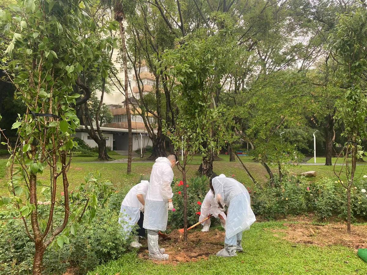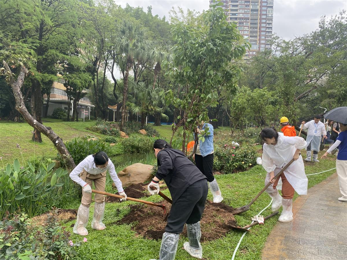 在人民公园工作人员的细心讲解植树注意事项后,大家挥锹铲土、你来我往、不怕脏不怕累,共同抚育苗木20株广州樱,抚育面积200平方米,为公园增添了浪漫氛围。