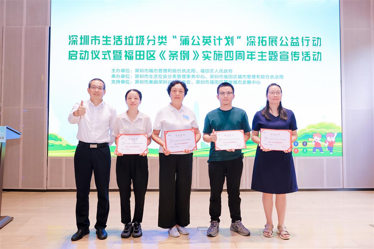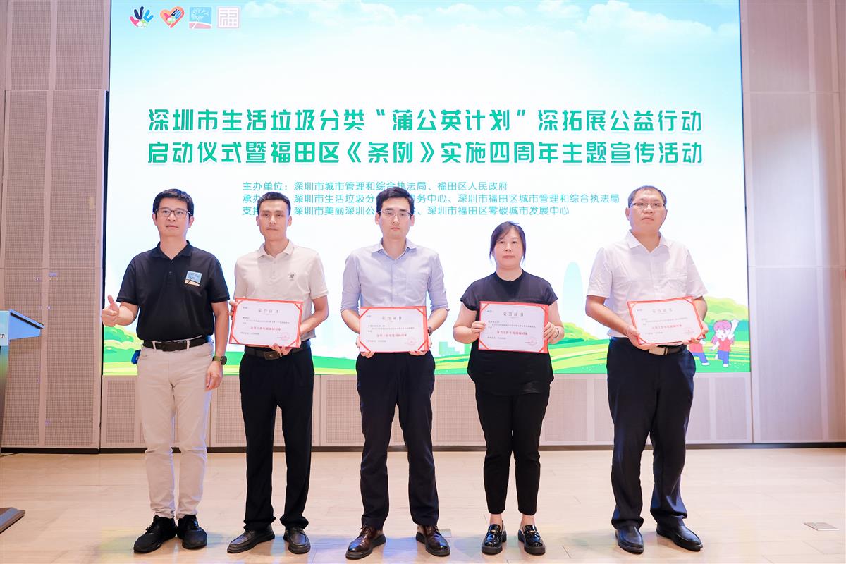 捐赠仪式后,深圳市垃圾分类事务中心主任梁治宇对在2023年度福田区垃圾分类工作中表现突出的居委会代表和住宅区代表颁发“分类工作年度激励对象”荣誉证书;福田区城市管理和综合执法局局长杨曙光为垃圾分类工作中表现突出的学校及其他重点场所代表、优秀个人代表进行了表彰,并颁发了荣誉证书。