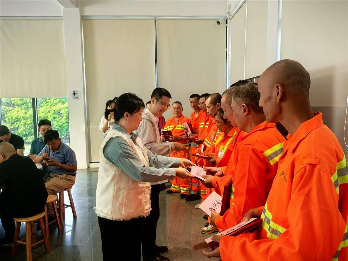 四是表彰优秀环卫工人,如福田街道评选出10名优秀一线环卫工人,现场颁发优秀环卫工人荣誉证书、鲜花及奖励物资;