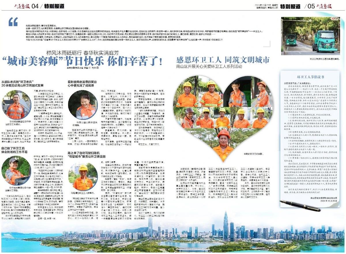 今年环卫工人节前后,南山区开展“感恩环卫工人 同筑文明城市”系列活动。