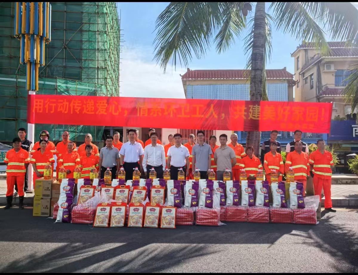 活动现场,南澳办事处明政同志及各办事处相关负责同志,分别给环卫 工人发放节日慰问金及粮油食物暖心包。