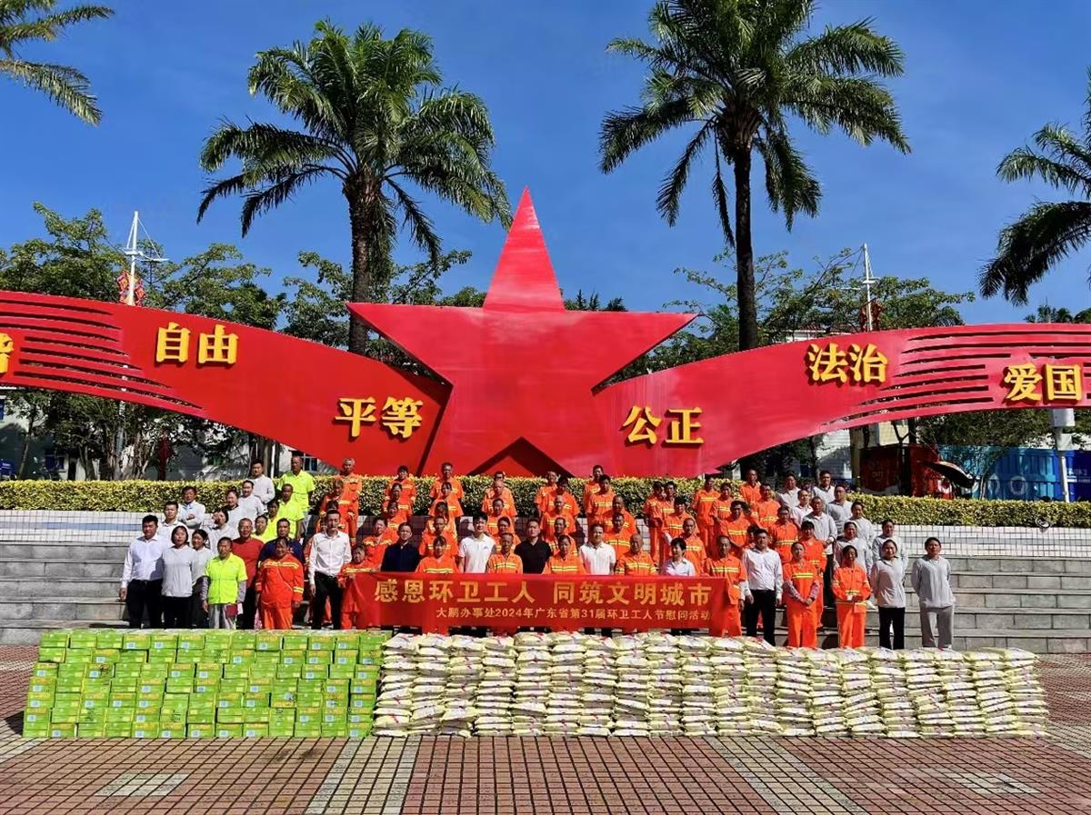 广东省第 31 届环卫工人节和深圳市第 8 个“关爱环卫工人日”到来之 际,为展示新时代环卫工作者昂扬向上的精神风貌,营造关心、关爱和尊重 环卫工作者的社会氛围。10 月 25 日,大鹏新区城市管理和综合执法局联合 各办事处以“感恩环卫工人,同筑文明城市”为主题,开展环卫工人慰问活 动,向一直以来辛勤工作在大鹏新区环卫第一线的 1500 余名环卫工人致以 节日的祝贺和亲切的慰问。通过发放节日慰问金及粮油食物暖心包,感谢他 们的辛勤劳作和无私奉献,在他们的不懈努力下,新区环境面貌跻身全市前 列,一大批环卫设施、场所,从过去脏乱臭蝶变成“品质大鹏”的美丽风景线。