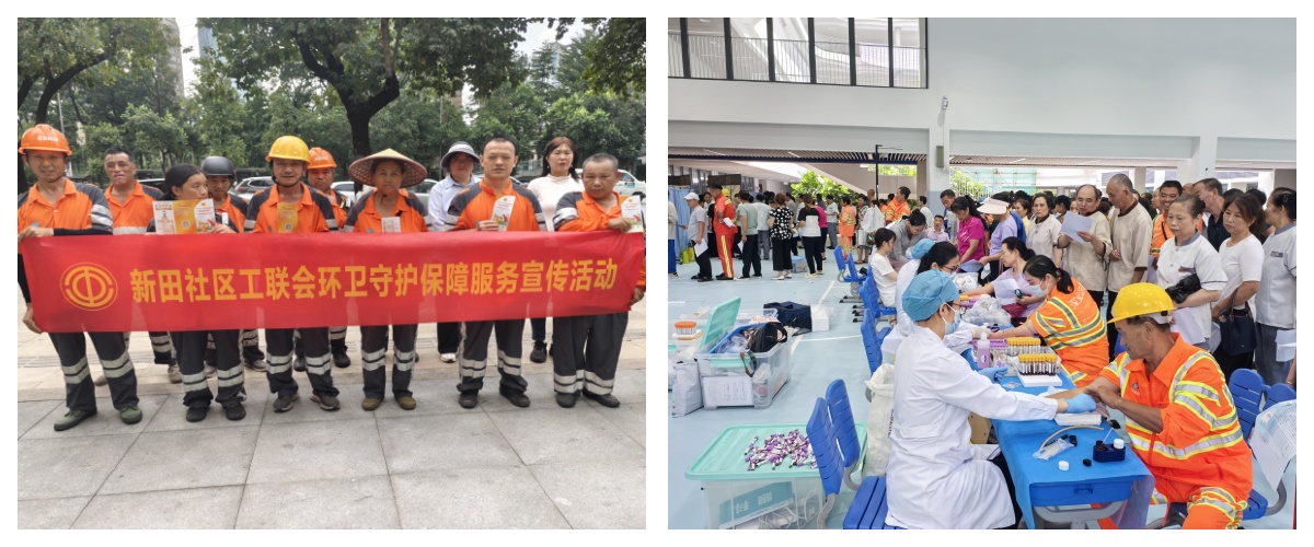 六是开展“环卫健康守护保障服务”活动,如华富街道为各环卫工人购买意外保险,提供环卫工人安全保障,提高环卫工人安全意识和自我防理解和尊重环卫工人;为保护深圳市环卫工人的健康,减少职业有害因素对其健康的危害,华富街道还联合深圳市职业防治院开展“环卫工人职业健康保护行动”的活动,为环卫工人开展健康体检并进行健康素养调查,保护各环卫工人身心健康,为环卫工职业健康保护策略提供基础依据;