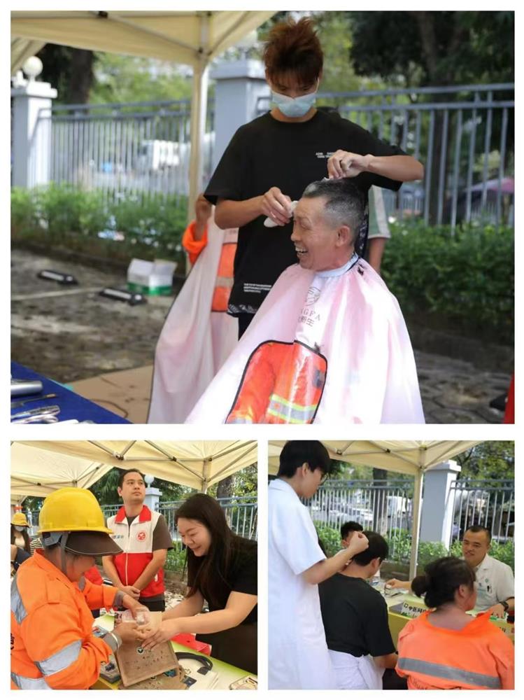 活动还联合区司法局、人力资源局、卫生健康局、龙田街道办事处等单位,现场提供义诊义剪、反诈宣传、劳动法解读、就业指导、手机贴膜、配钥匙等暖心服务,受到环卫工人的欢迎和好评。