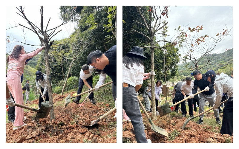 11日,基金会联合中核集团在荔枝公园种下4株紫花风铃木。活动现场,中核集团的员工们热情高涨,他们身着统一的工作服,手持铁锹、水桶等工具,认真地投入到植树活动中。大家分工明确,有的挥锹铲土,有的扶苗填坑,有的浇水灌溉,每一个步骤都做得一丝不苟。在大家的齐心协力下,4 株紫花风铃木稳稳地扎根在荔枝公园的土地上,为公园增添了一份独特的色彩。