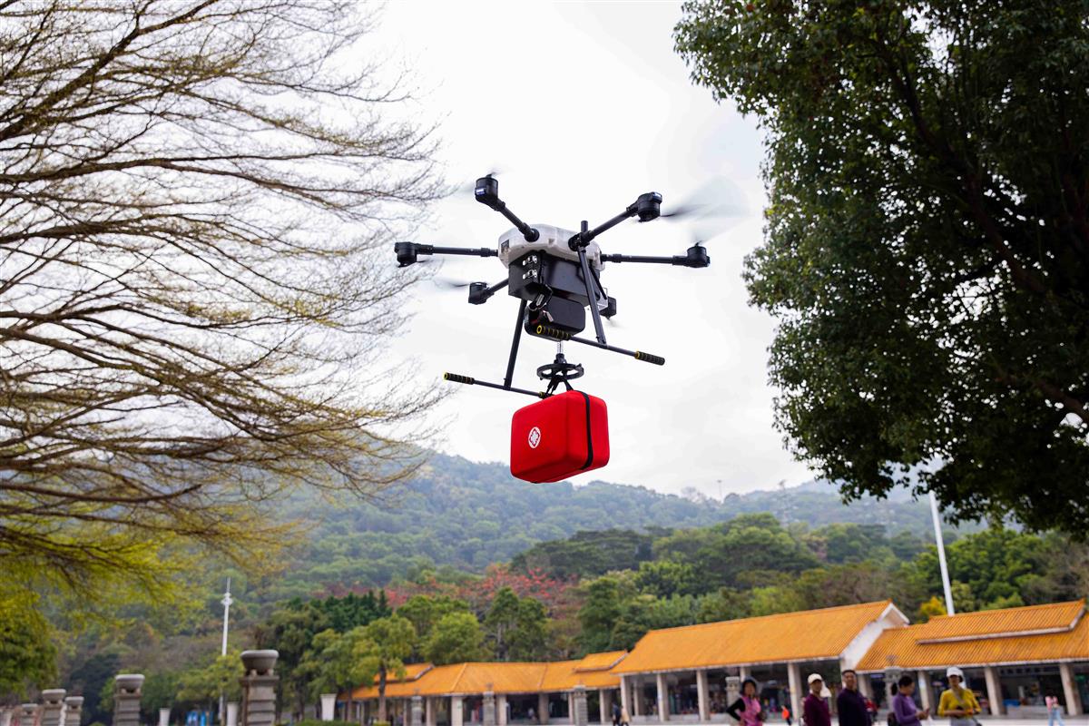 该项目率先在塘朗山郊野公园、凤凰山森林公园、石岩湿地公园、罗田森林公园和福海河公园设立了5个无人机 AED 配送站试点。每个公园规划了30个无人机降落点位,构建起了城市智能化空中救护平台。一旦发生紧急状况,市民扫描附近急救点的“企鹅急救”二维码,即可精准定位、一键呼叫装载着AED和急救包的无人机,通过预设最快航线,迅速起飞并精准抵达事发地,为患者争取宝贵的急救时间,成功打通了急救的立体化空中通道。