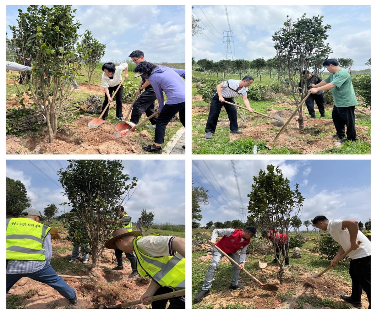 活动现场,天朗气清,惠风和畅,参与人员热情高涨,迅速投入到植树活动中。经过大家分工协作,150株根系健壮的茶树苗整齐排列,嫩叶在微风中轻轻摇曳,宛如一片等待舒展的绿色诗行,为春日的五指耙公园增添了勃勃生机。