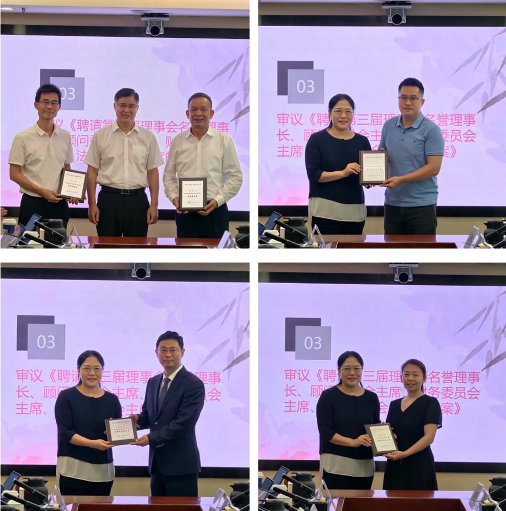 冯增军副局长和李贤义主席向卸任的理事、监事颁发感谢牌,感谢他们积极参与基金会各项工作,对公益事业的支持与奉献。