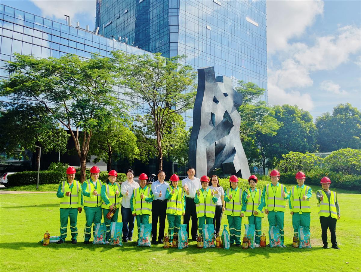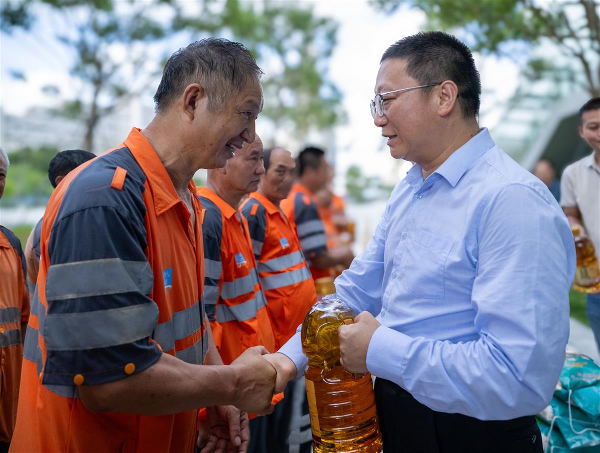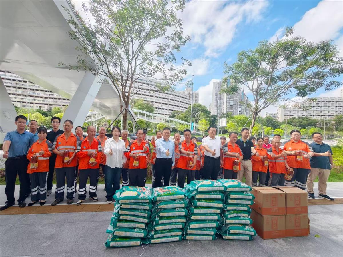 9月20日,超强台风“桦加沙”来袭,深圳面临严峻防台考验。在台风影响前的关键窗口期,全市迅速启动防御机制,城管系统一线工人冲锋在前,筑牢城市安全防线。为感谢他们的辛勤付出与无私奉献,9月29日,深圳市城市管理和综合执法局联合美丽深圳公益基金会共同开展慰问活动,为公园、环卫、绿化、灯光等岗位的工人代表送上慰问粮油,感谢他们在防台抗险中的辛勤付出与无私奉献。市城管和综合执法局领导冯增军、杨立群、汪斌,美丽深圳公益基金会执行副理事长兼秘书长张晓玮参加了慰问活动。