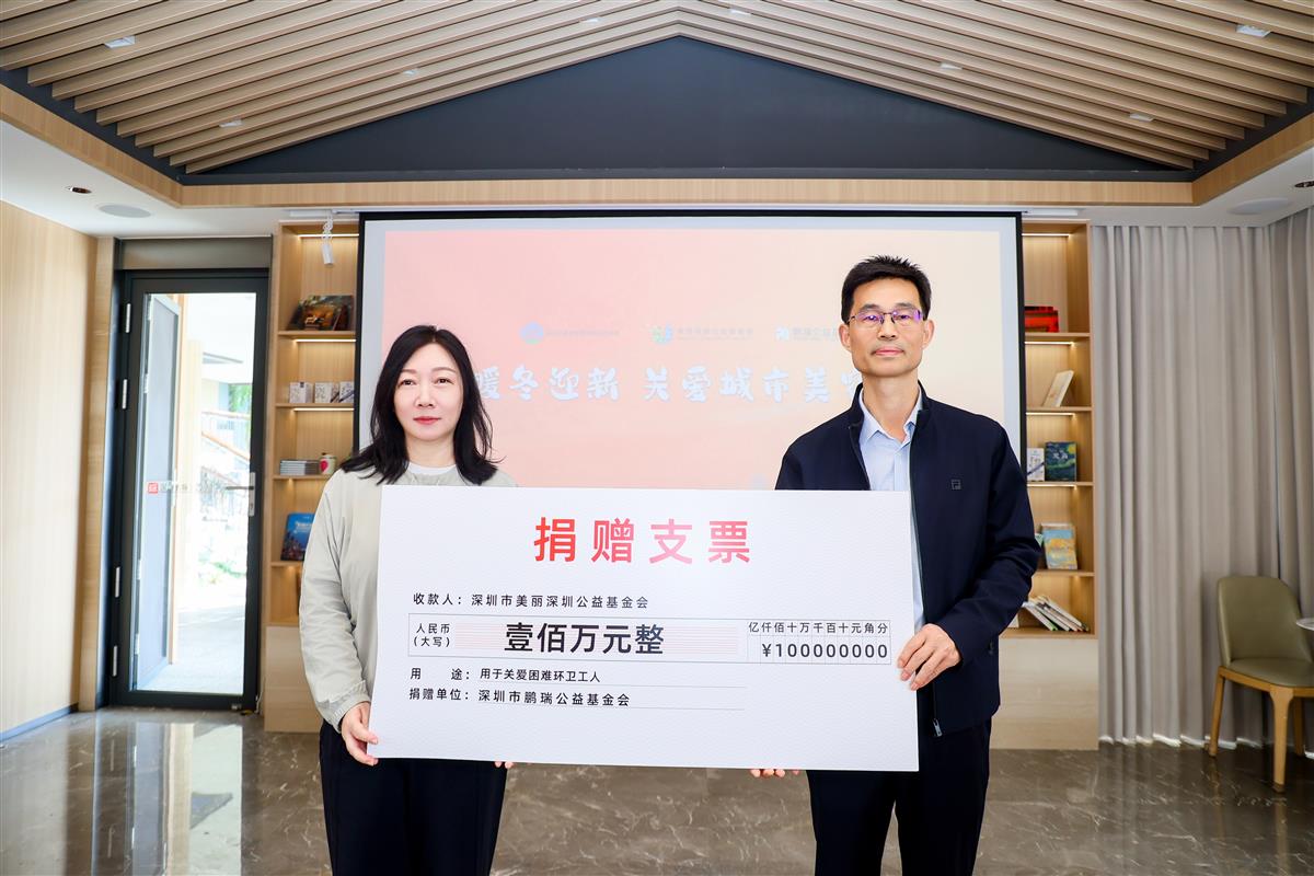 活动现场,一个温暖的捐赠仪式格外引人注目——鹏瑞公益基金会再次向美丽深圳公益基金会捐赠100万元爱心善款,专项用于关爱环卫工人项目。